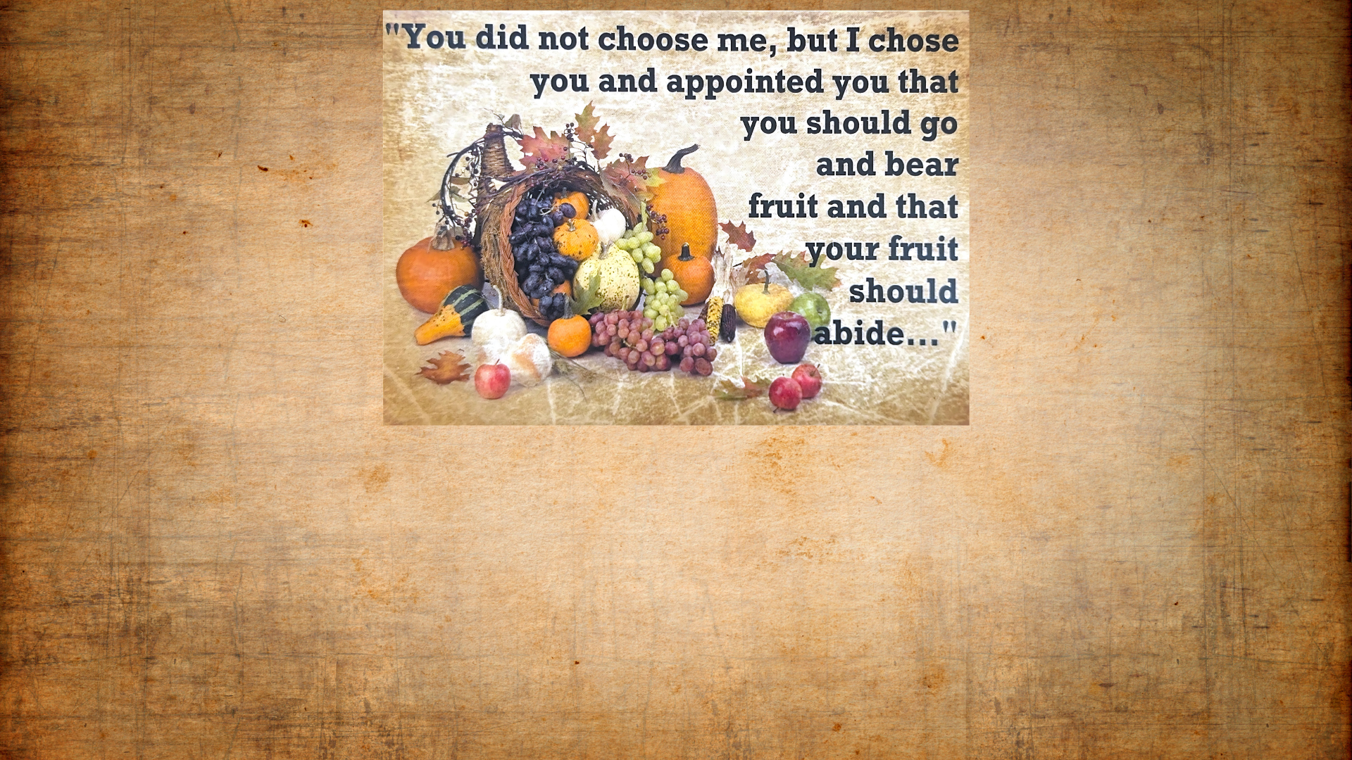 "You did not choose me, but I chose you and appointed you that you should go and bear fruit and that your fruit should abide..."